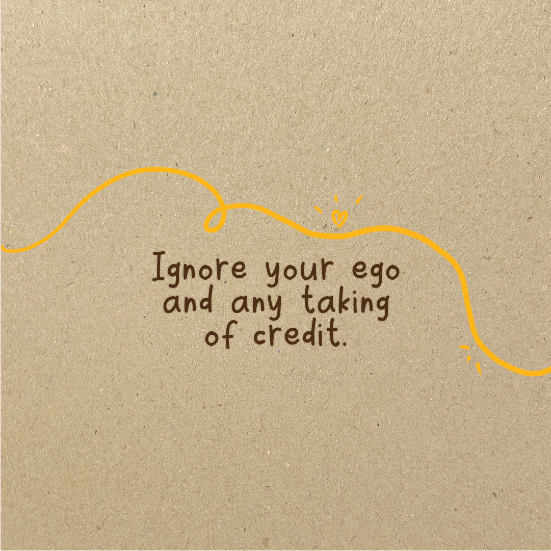 Ignore your ego and any taking of credit.
