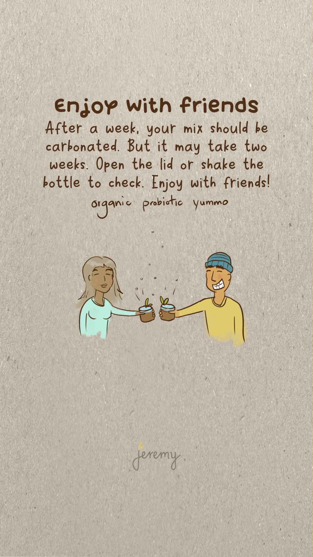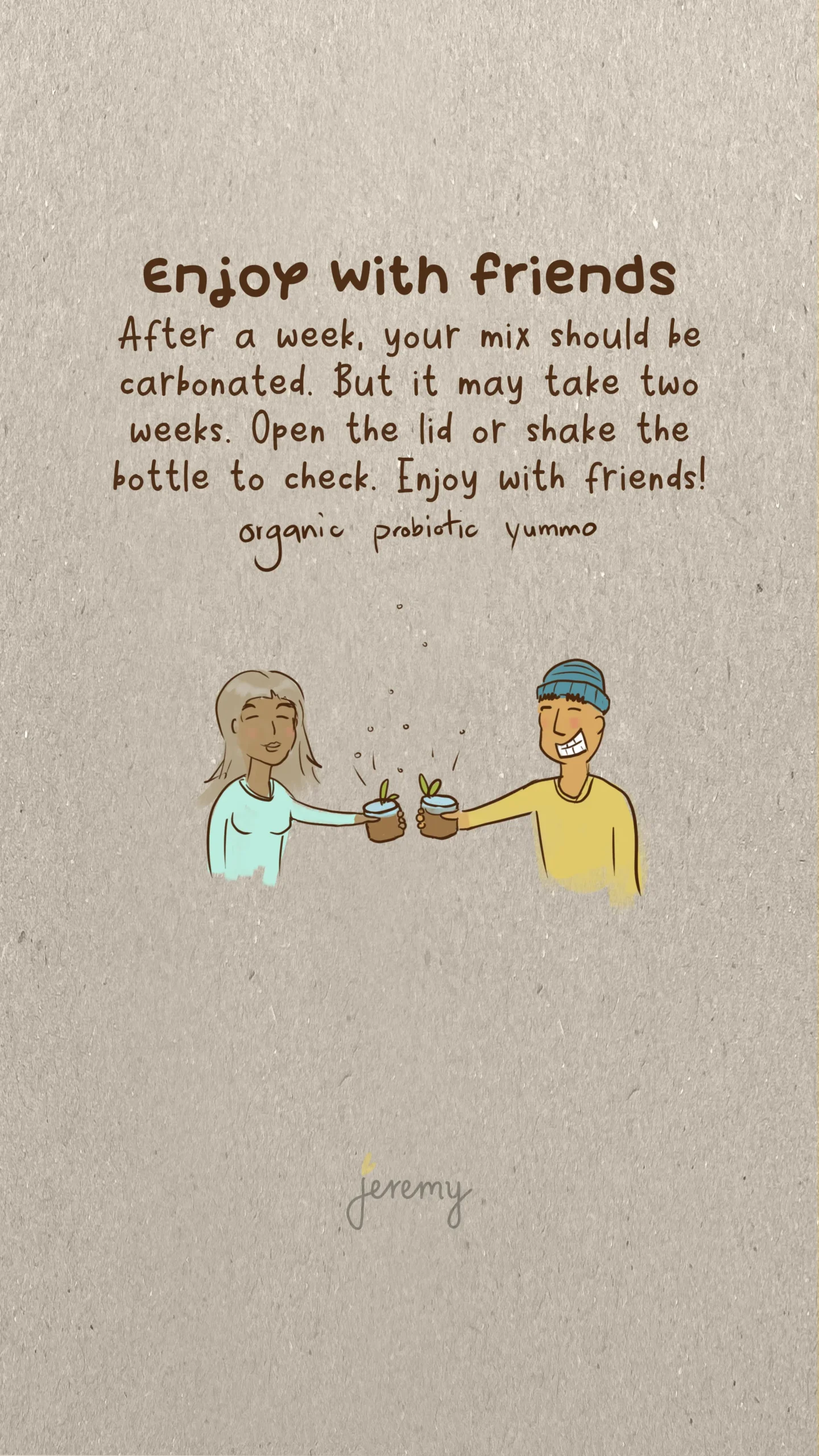 If you don’t want to use a ginger plant / fermentation method, you can used a soda machine to carbonate your mix. Just keep it in the fridge and mix it with soda to the strength you like.